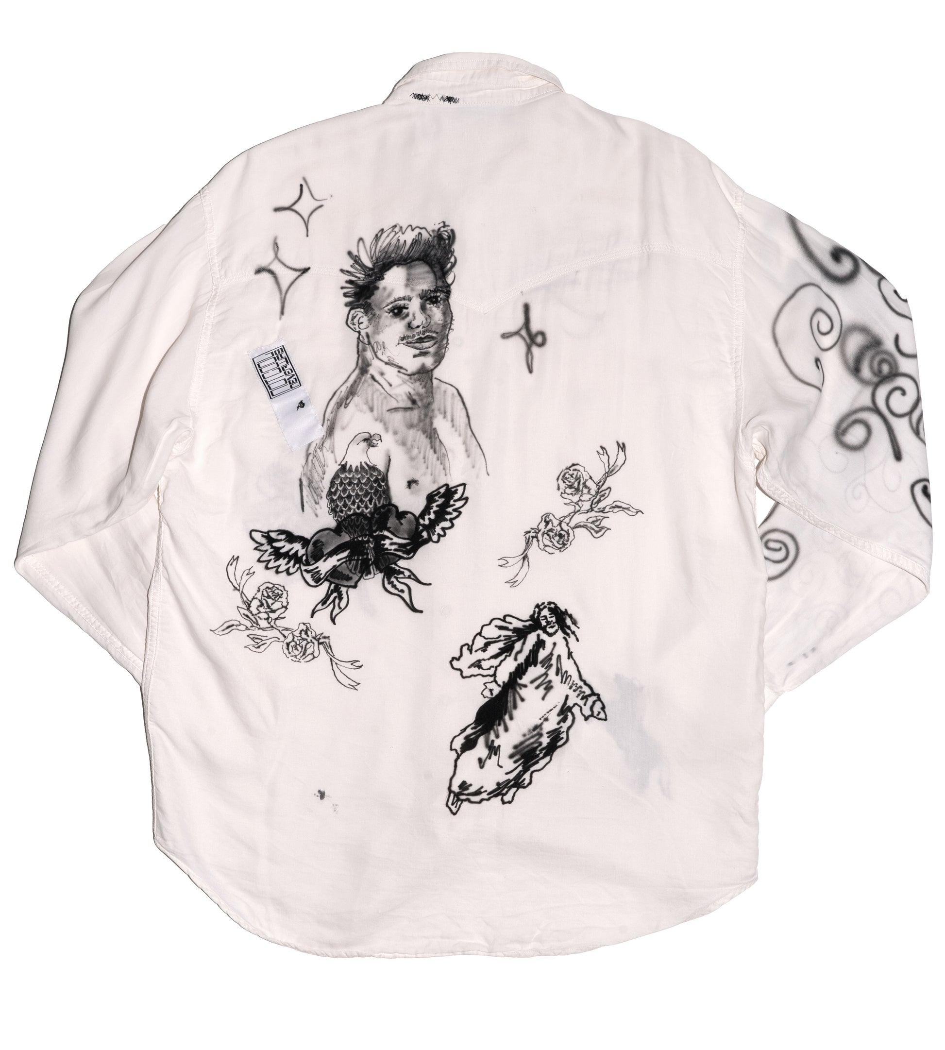 horses hunks n heathens - oh my! black airbrush on white vintage versace button down