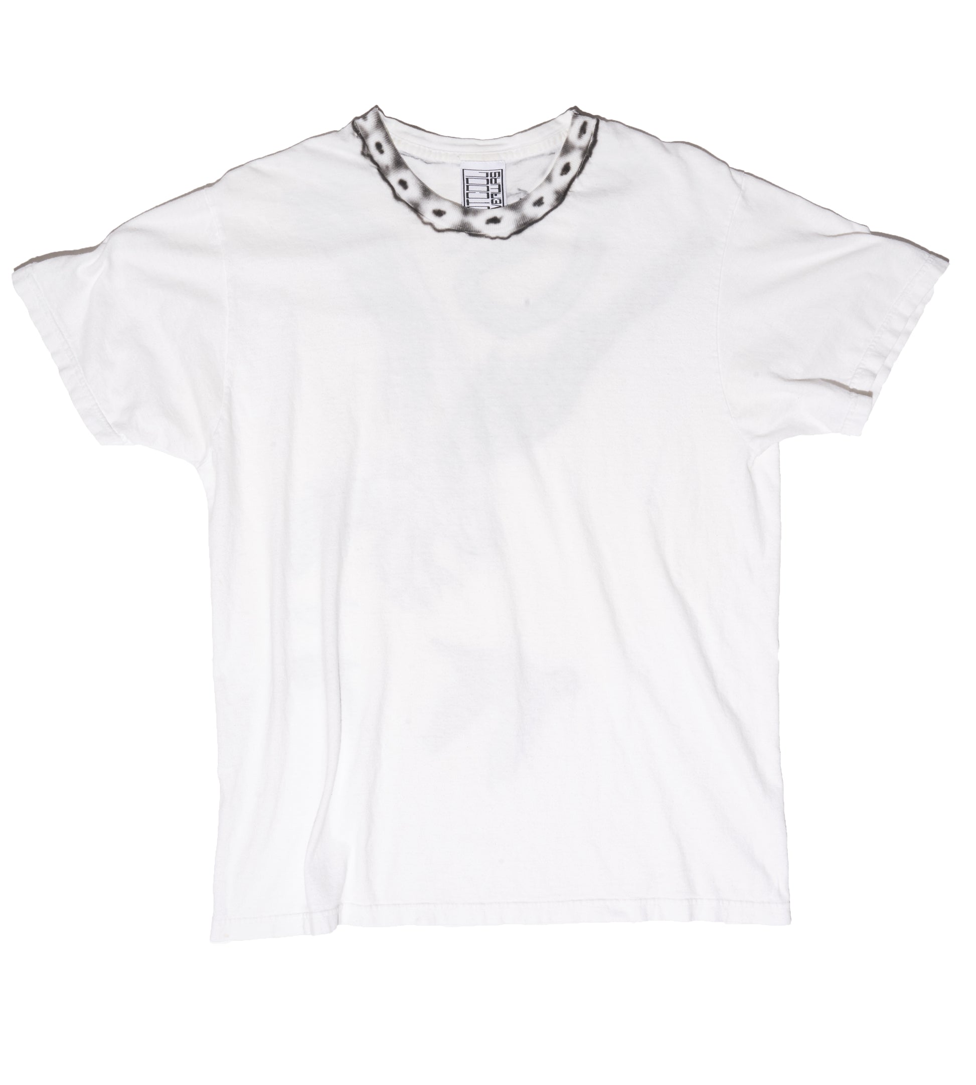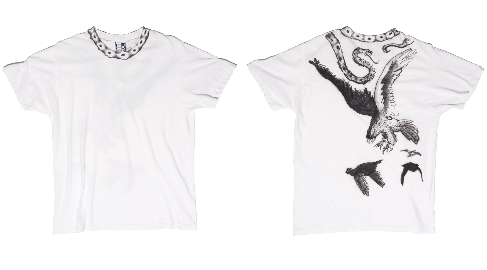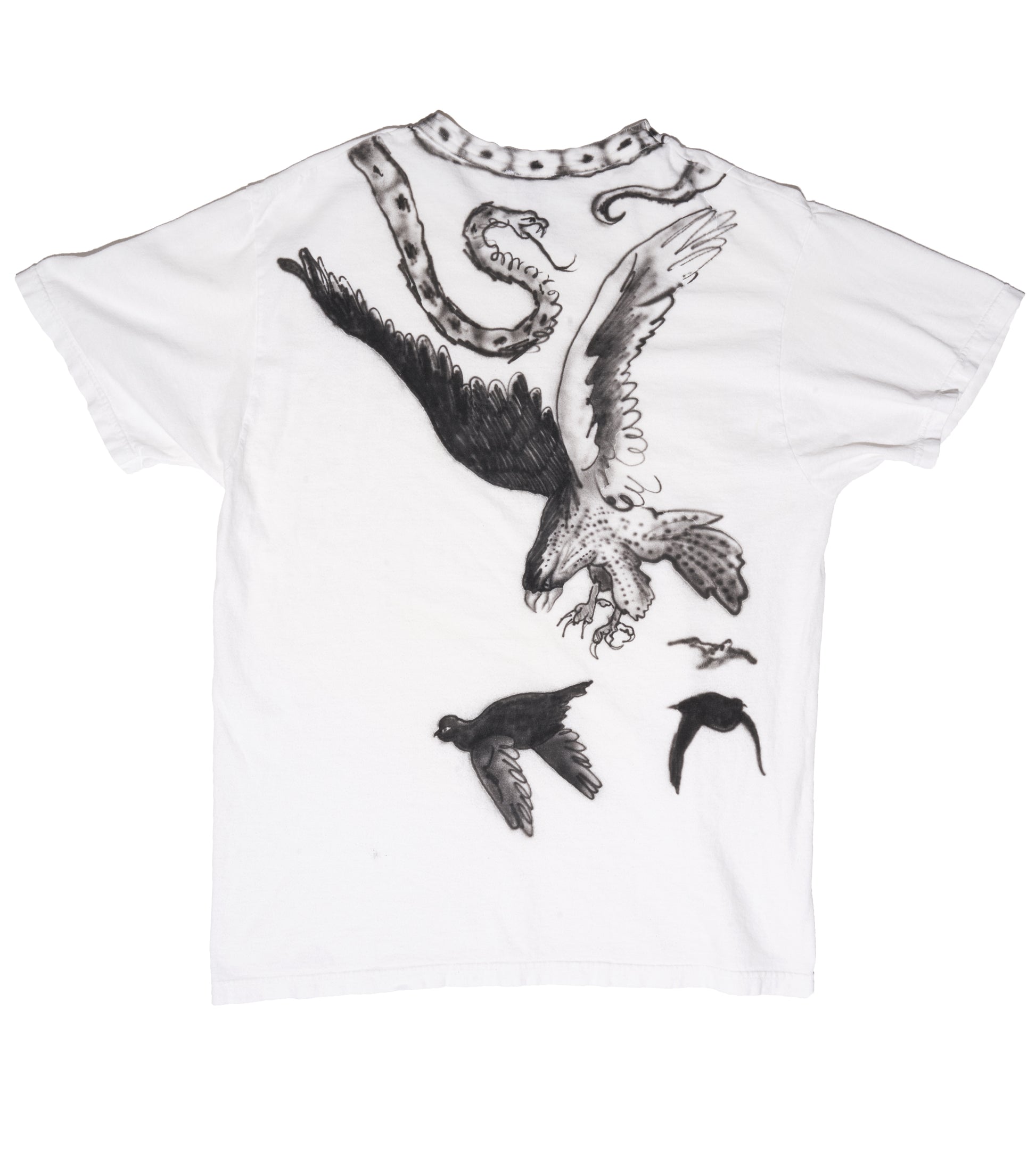 crazy collar and super special back, airbrushed in black on this white vintage blank
