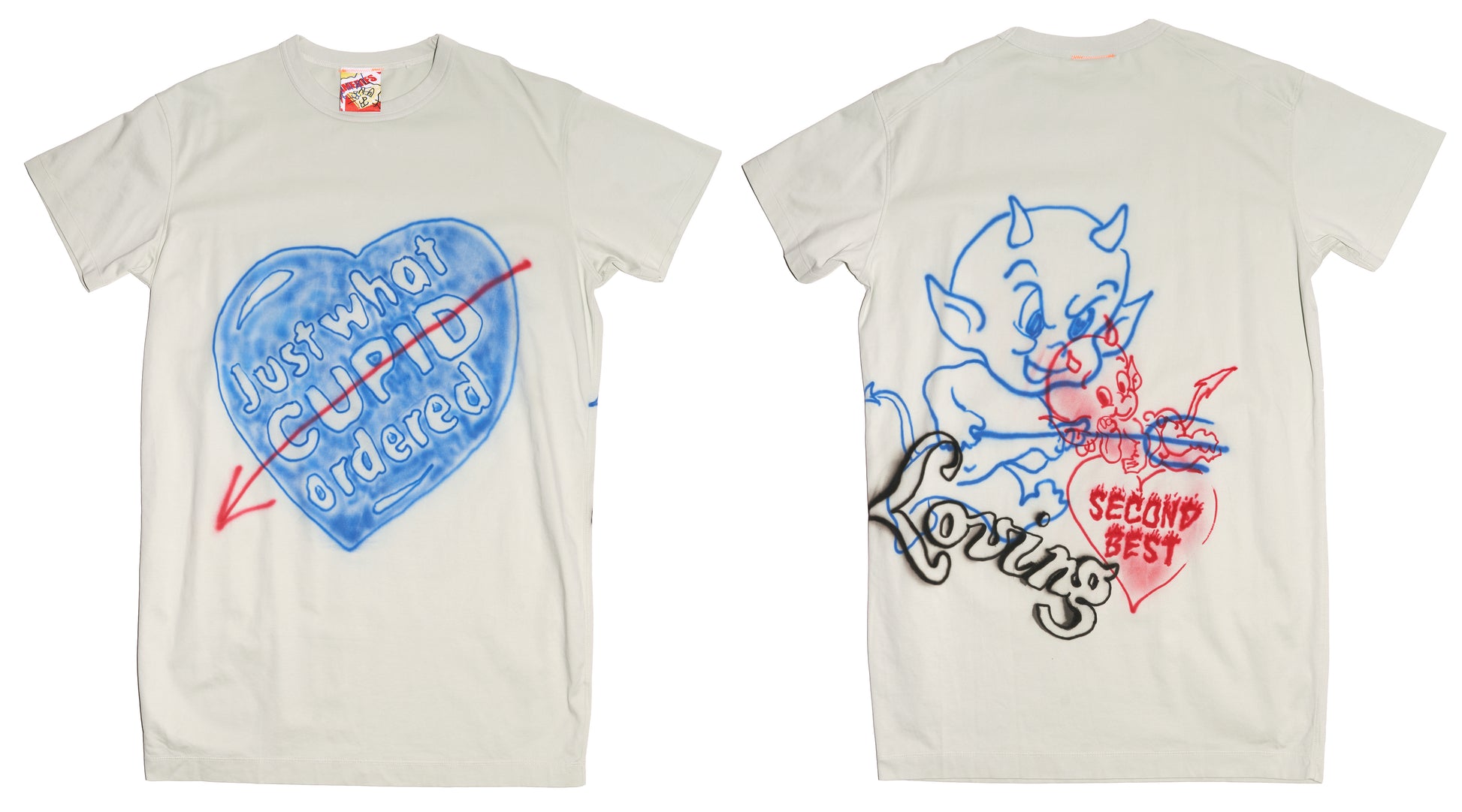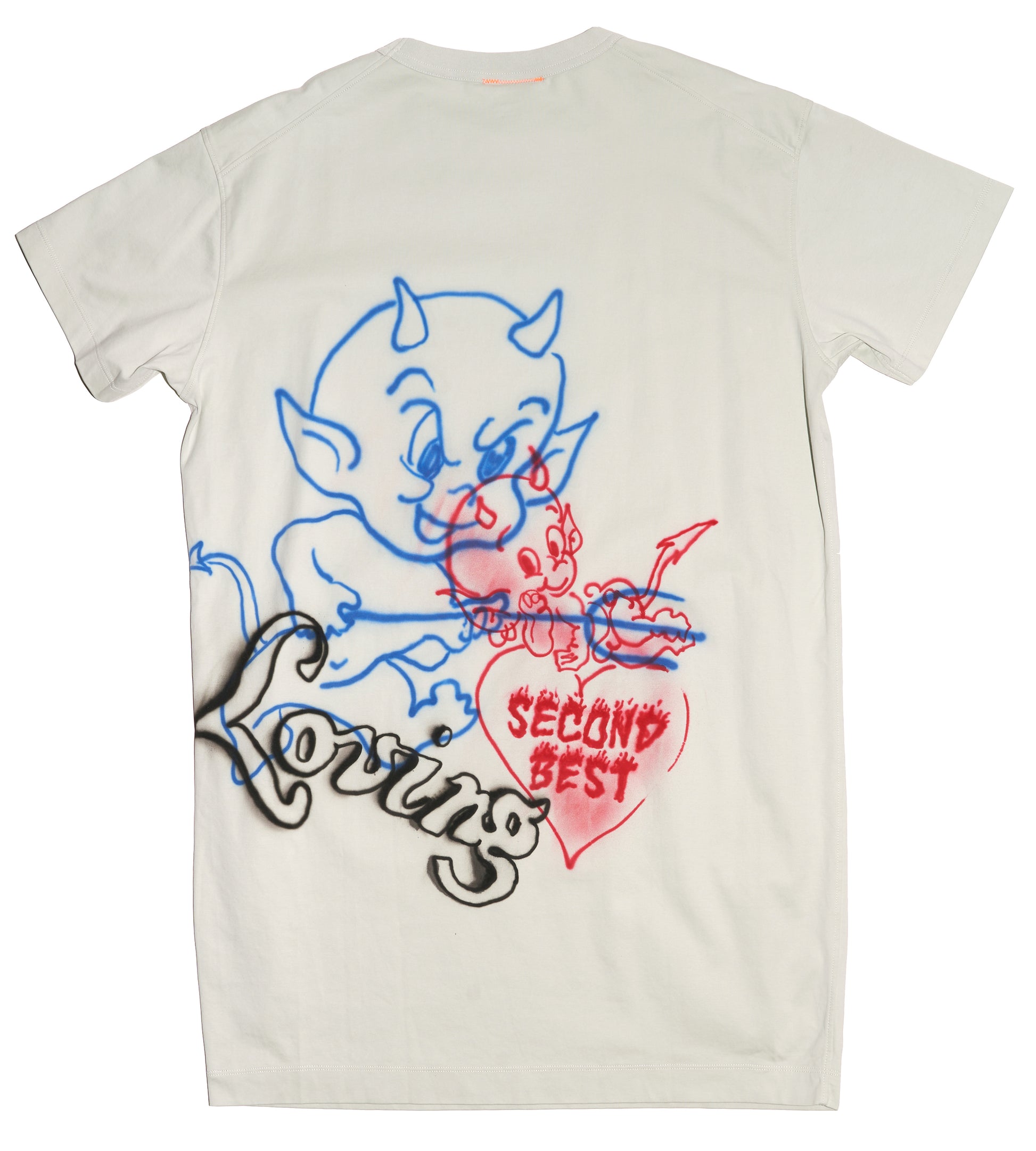 mint-ish oversized buttery soft t-shirt dress with hopeless/romantic airbrushed doodles